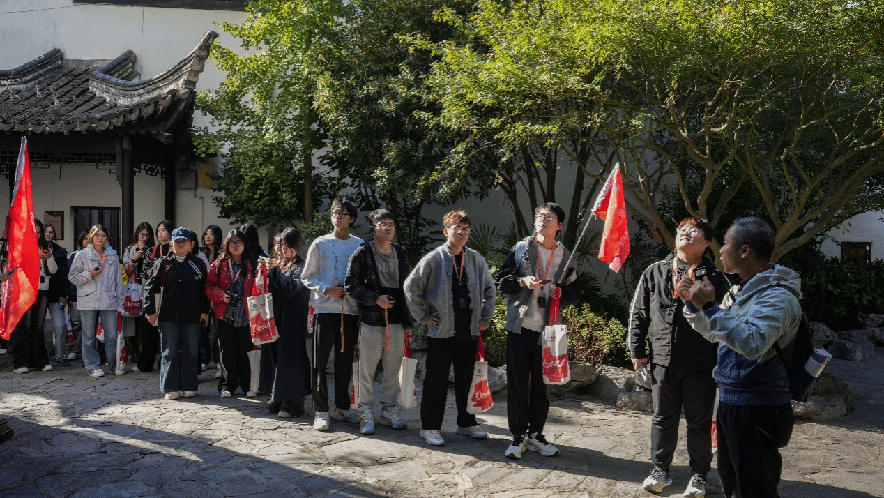 在专业导游的带领下,同学们步入这座始建于清代的江南名宅。曲径通幽的院落、精巧雅致的木雕、寓意深长的砖石门楣,无不展现着中国古代建筑艺术的精湛技艺与深厚文化底蕴。同学们仔细聆听着关于故居格局、“津逮楼”藏书故事以及“友恭”家训的讲解。“友恭”二字所蕴含的家族和睦、恭谨友爱的处世哲学,深深触动了在场的每一位同学。大家认识到,优秀的家风家训不仅是家族绵延的基石,更是中华传统文化中关于社会伦理与价值理念的生动体现,为今天筑牢文化自信提供了丰厚滋养。